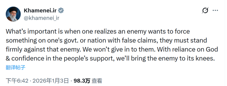 伊朗最高领袖哈梅内伊在社交媒体上的发言